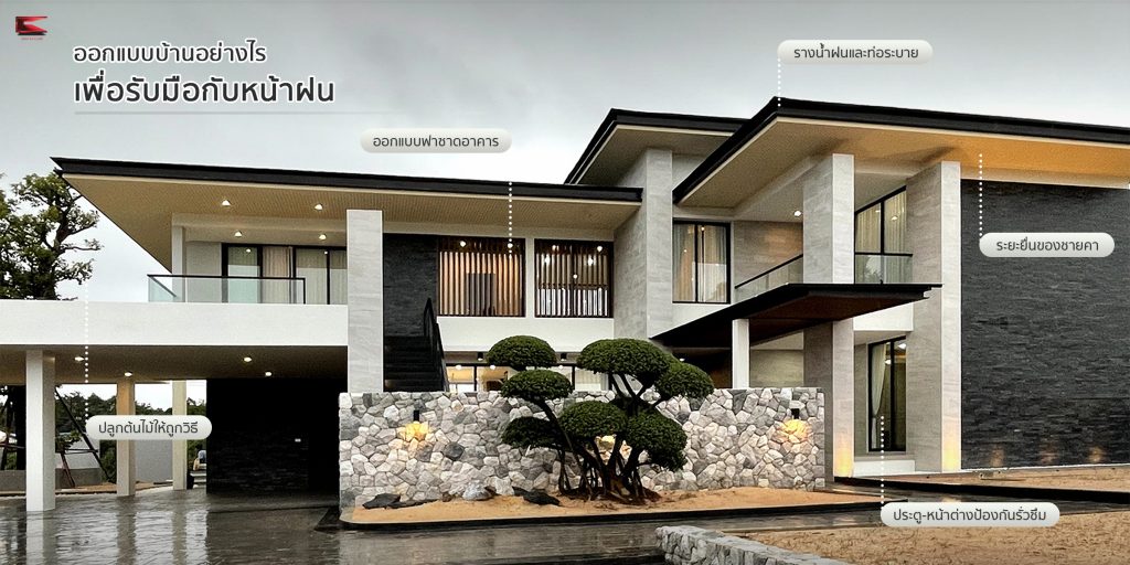 เมื่อเข้าฤดูฝน ฝนตกทุกวันแบบนี้หลายบ้านพบปัญหาจากน้ำฝนและลมพายุ ทำให้ตัวอาคารเสียหาย ส่งผลต่อสุขภาพของผู้อยู่อาศัย รวมถึงความอยู่สบายของบ้าน ปัญหานี้มีแนวทางป้องกันได้ตั้งแต่ช่วงเริ่มต้นออกแบบ วันนี้เรามาแชร์ไอเดียการออกแบบองค์ประกอบต่างๆของบ้านที่ช่วยป้องกันฝนกันค่ะ