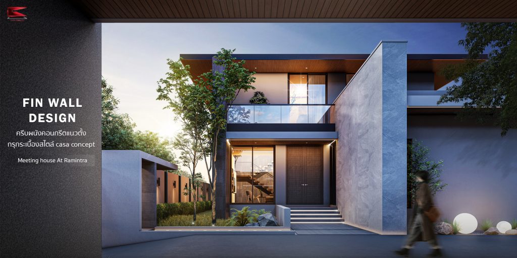 ดีไซน์ครีบผนังแนวตั้งที่ยื่นออกมาจากตัวบ้าน เป็นเอกลักษณ์หนึ่งของงานออกแบบสไตล์ Casa Concept ที่ดึงดูดให้อาคารน่าสนใจ ด้วยผนังหนาแนวตั้งที่โดดเด่น บังคับสายตาให้มองเห็นเส้นสายอย่างชัดเจน ส่งให้ #บ้านหรู ดูสูงสง่า หนักแน่น และอลังการมากยิ่งขึ้น