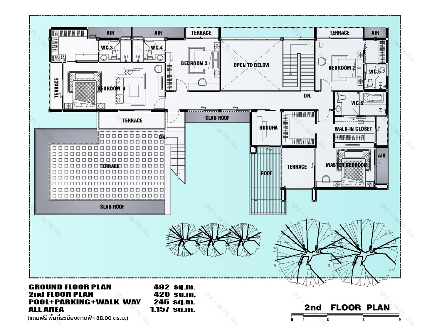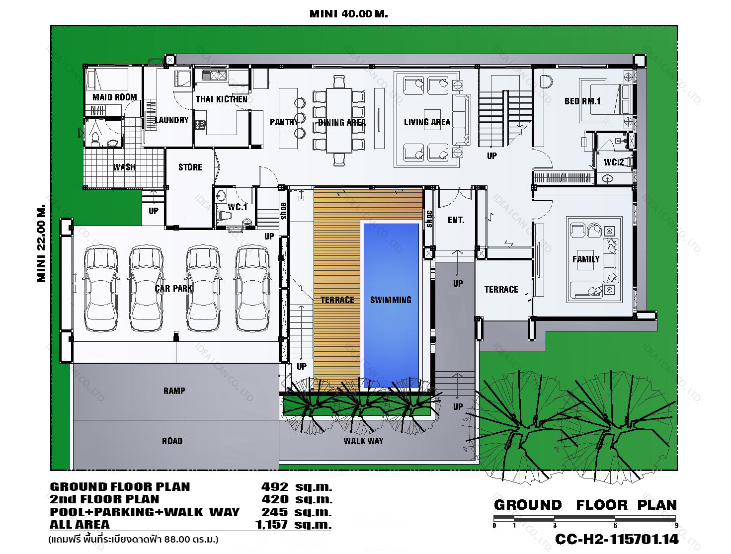 แบบบ้านโมเดิร์นหรู รหัสแบบ CC-H2-115701.14 แบบบ้านสองชั้น Modern Luxury 6 ห้องนอน 6 ห้องน้ำ ที่จอดรถ 4 คัน สระว่ายน้ำ 161 ตร.ม.